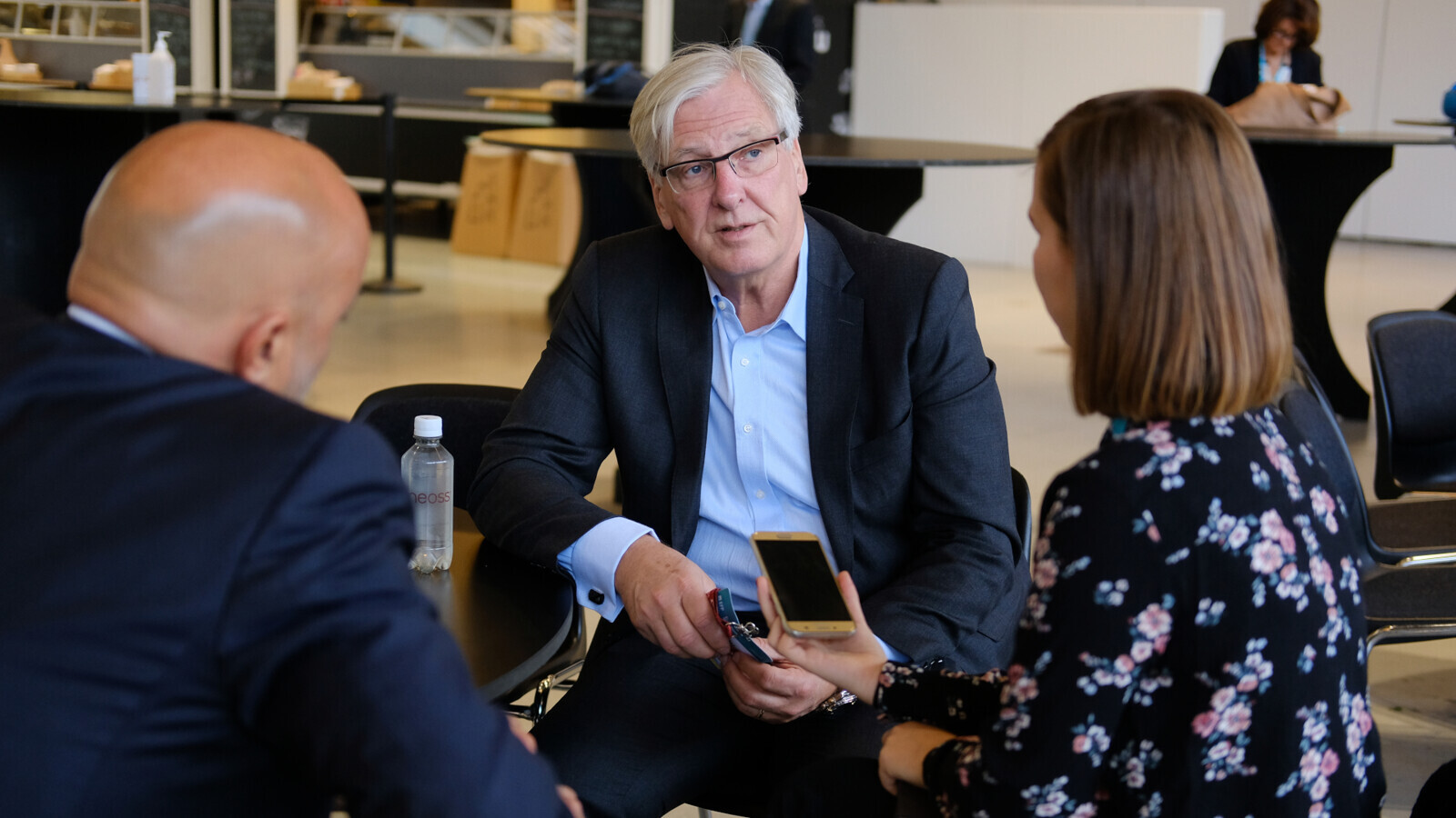 From left: Dental Tribune International CEO Torsten Oemus, Neoss CEO Robert Gottlander and Dental Tribune International editor Franziska Beier in conversation. (Image: DTI)