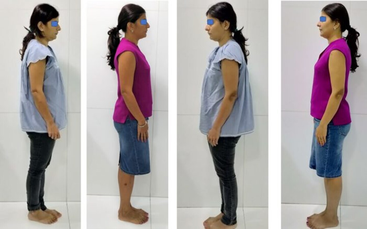 Occlusal correction and restorative treatment resulted in a remarkable improvement in the posture of the patient, pertaining to the head position and curvature of the spine. (Photograph: by Dr. Rinku Jain)