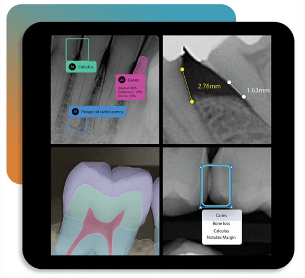 X-rays are the most important part of developing an ideal treatment plan for the patient. The real-time pathology detection software integrated into the radiology system helps dentists identify various dental abnormalities in patients' radiographs. Since dental radiology is a regular part of a patient’s experience, the impact of AI through this detection software can be greatly appreciated by the dentist and the patients [3].