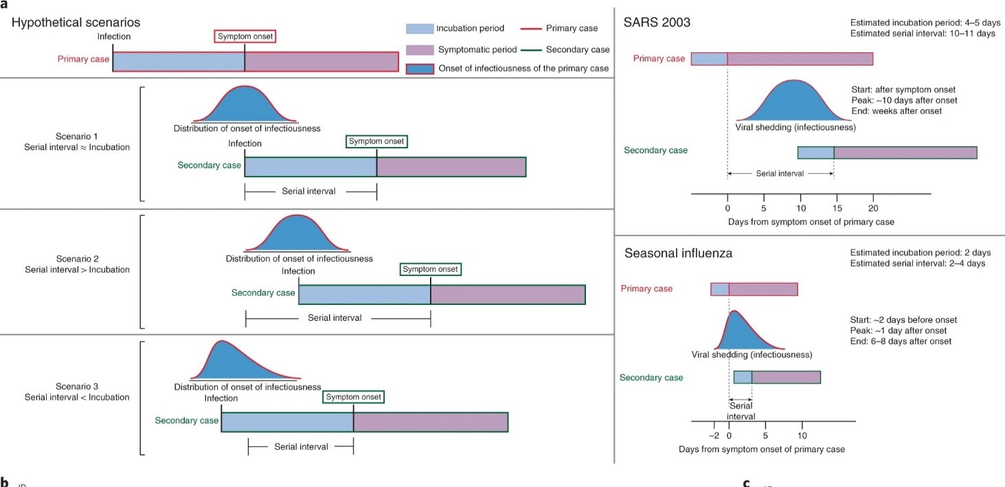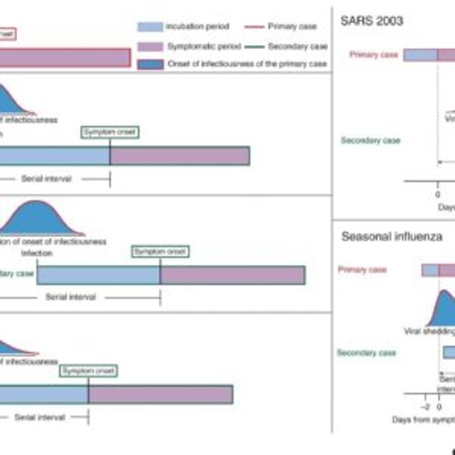 SARS (severe acute respiratory syndrome) was notable because infectiousness increased around 7–10 days after symptom onset. Onward transmission can be substantially reduced by containment measures such as isolation and quarantine. In contrast, influenza is characterized by increased infectiousness shortly around or even before symptom onset.