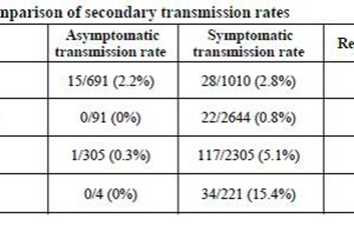 Table 1. Comparison of secondary transmission rates