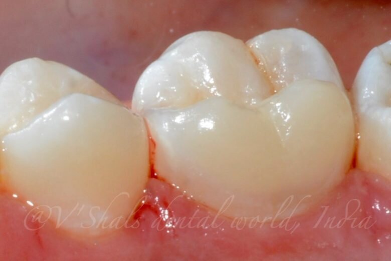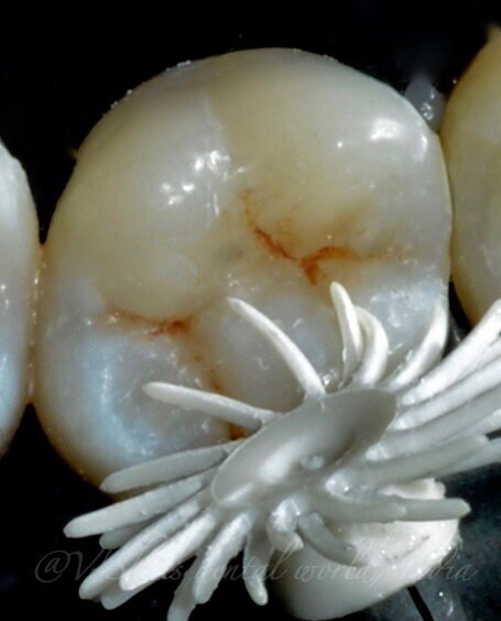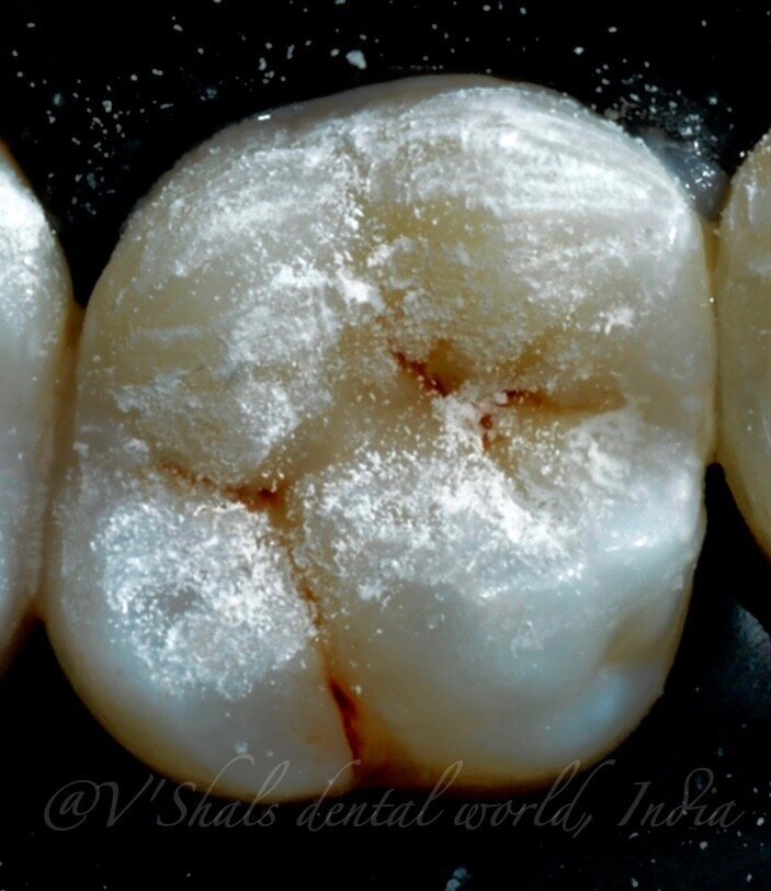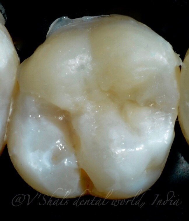 Fig. 11- Finally top layer is cured under glycerin and then finished grossly with 100 micron burr in slow speed and soflex discs( 3M ESPE)