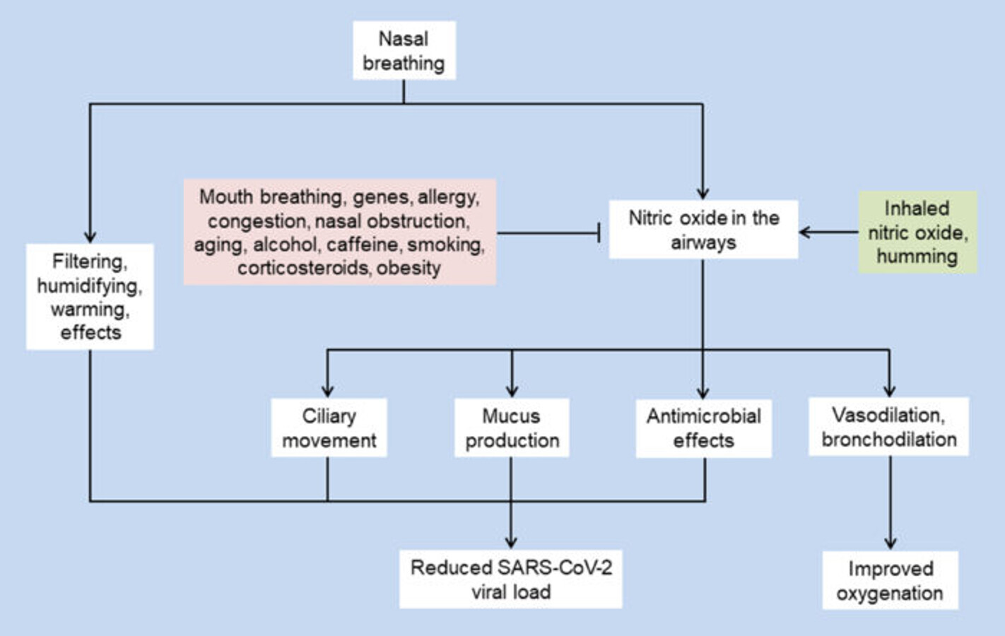 According to Louis Ignarro, (Nobel Prize for the discovery of NO) in April’20 published “Inhaled Nitric Oxide and COVID-19” - “One practice to consider during this coronavirus pandemic is to breathe or inhale through the NOSE and exhale through the Mouth”