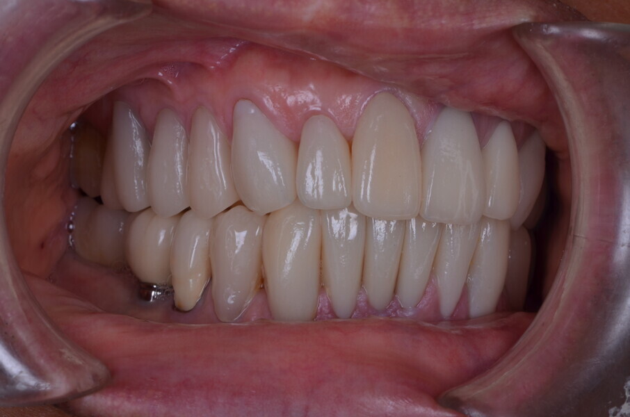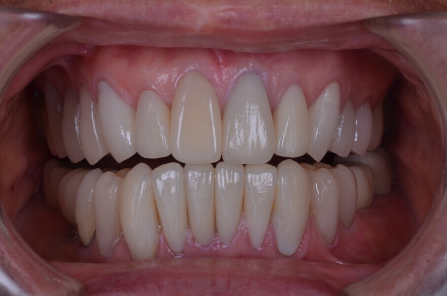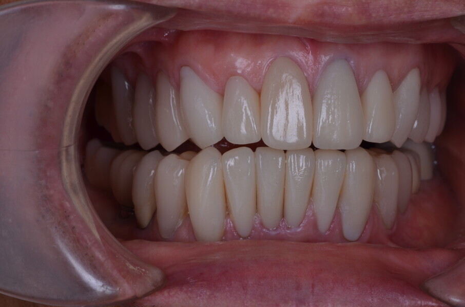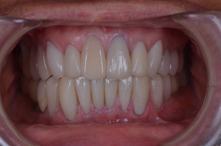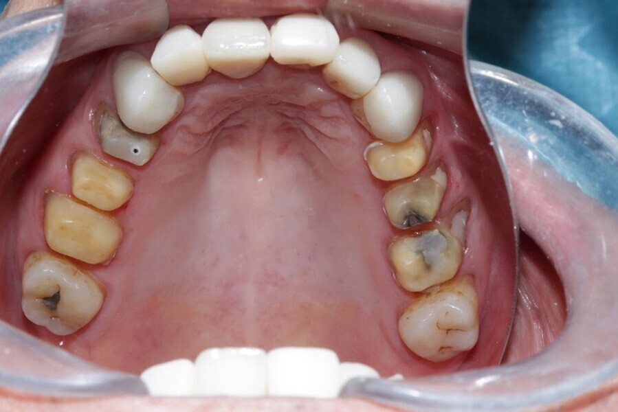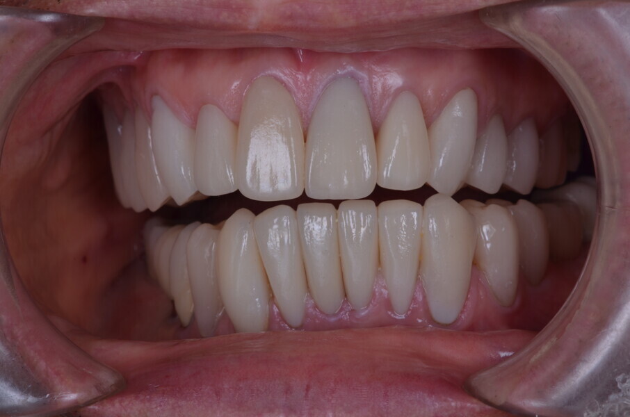 Figure 21 Palatal view of upper anterior emax 2 layered restorations all veneers except 21